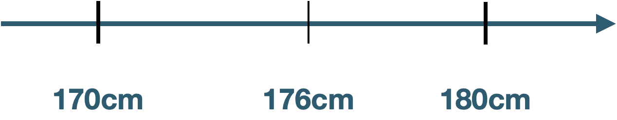 | 量的変数 | 間隔尺度 | 大小関係に加えて間隔にも意味がある。足し算はできるけど掛け算には意味がない(西暦1000年の2倍は西暦2000年、という計算に意味はある?) | 西暦・温度 |